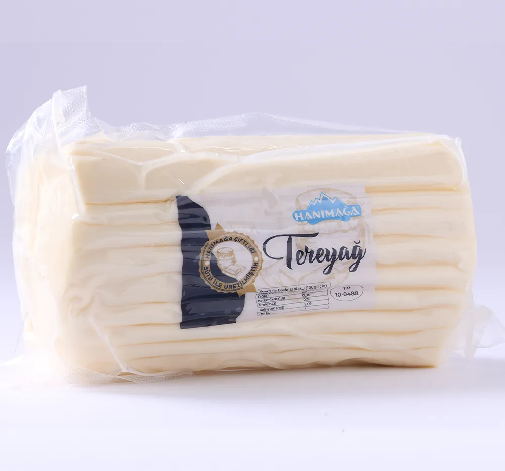 Hanımağa Çiftliği’nin kendi üretimi sütlerinden elde edilen tereyağı, geleneksel yöntemlerle hazırlanarak doğal, katkısız ve yoğun aromalı bir lezzet sunar.