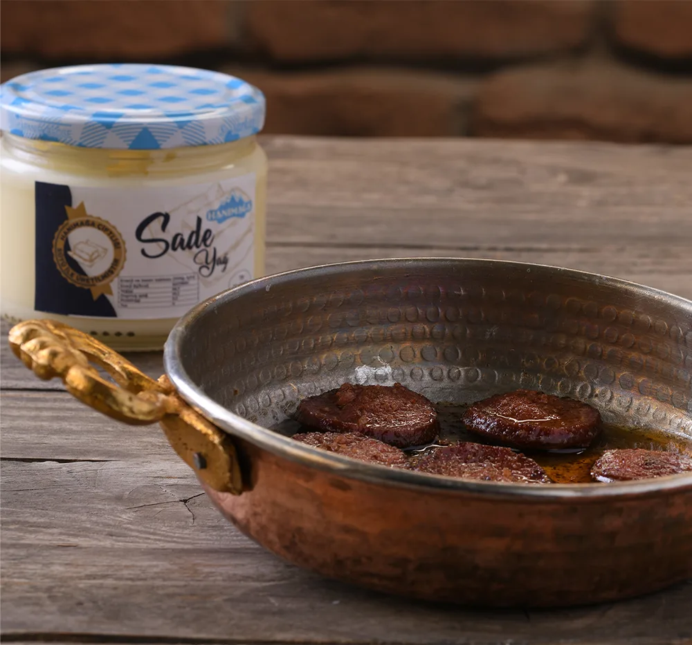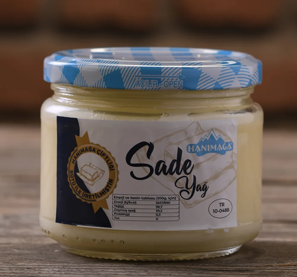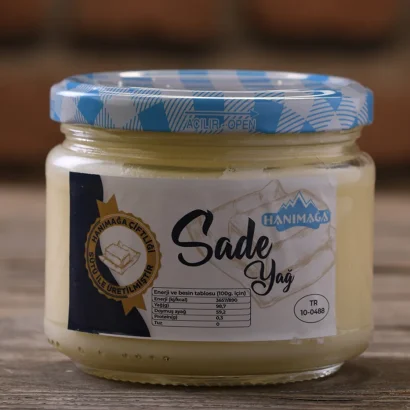 Hanımağa Sade Yağ, tereyağının özel işlemlerden geçirilmesiyle elde edilen, yoğun aromalı ve berrak yapıya sahip bir yağ çeşididir.