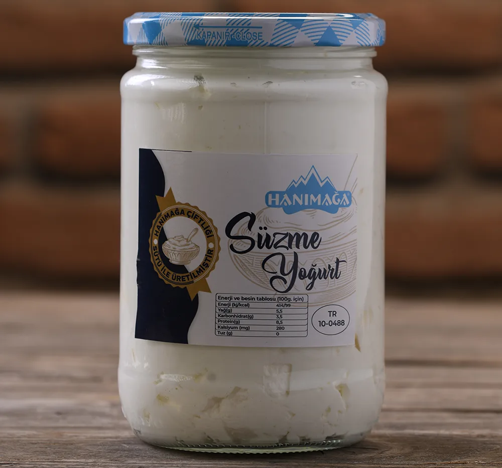 Hanımağa Süzme Yoğurt, özel süzme işlemiyle hazırlanarak yoğun kıvamlı ve dolgun bir lezzet sunar.