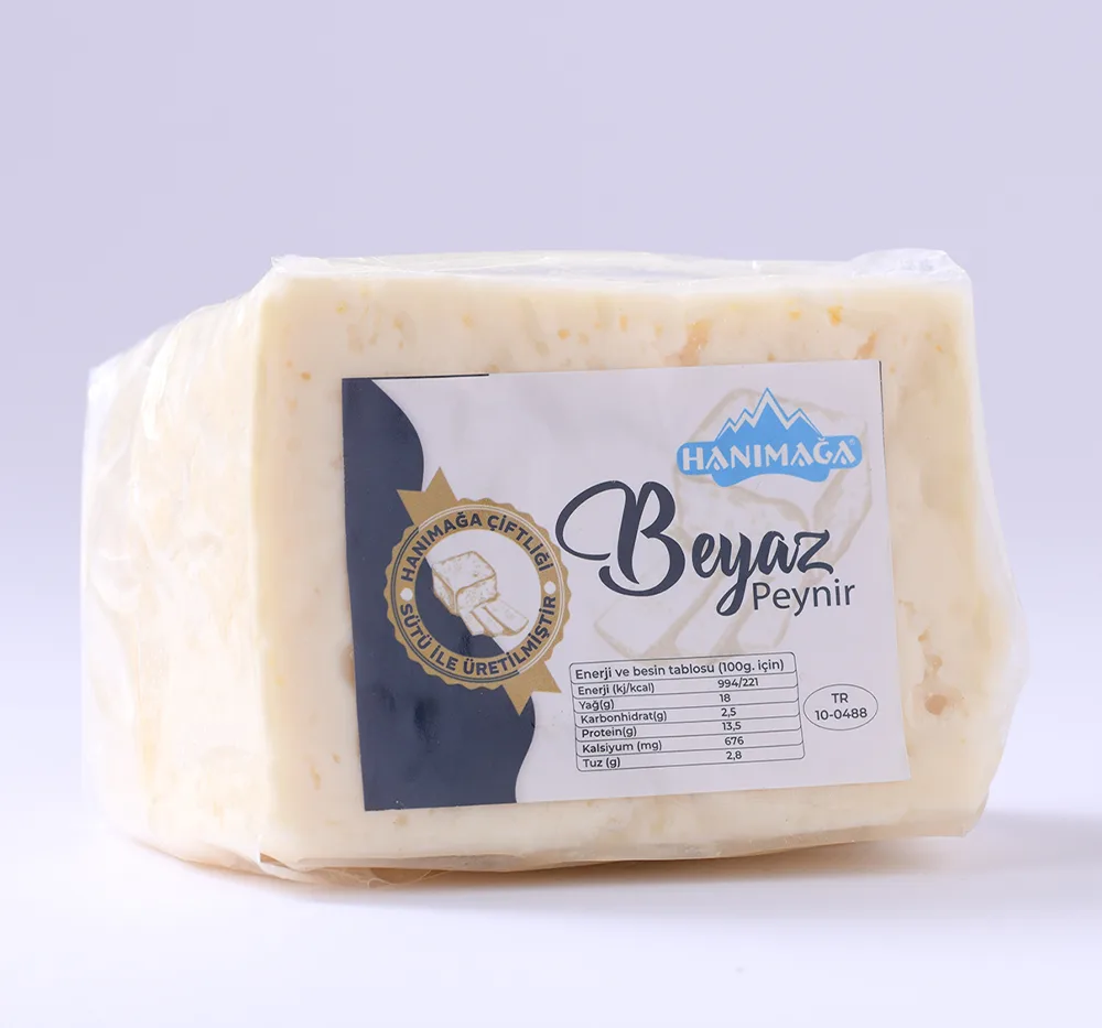 Hanımağa Çiftliği’nin kendi üretimi sütlerinden elde edilen beyaz peynir, doğal yöntemlerle olgunlaştırılarak yoğun aromalı ve karakterli bir lezzete ulaşır.